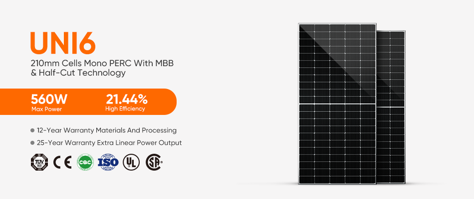 UNI 6 Series 110 Half-Cells Mono Solar Module 540watt 550W 555W 560Wp
