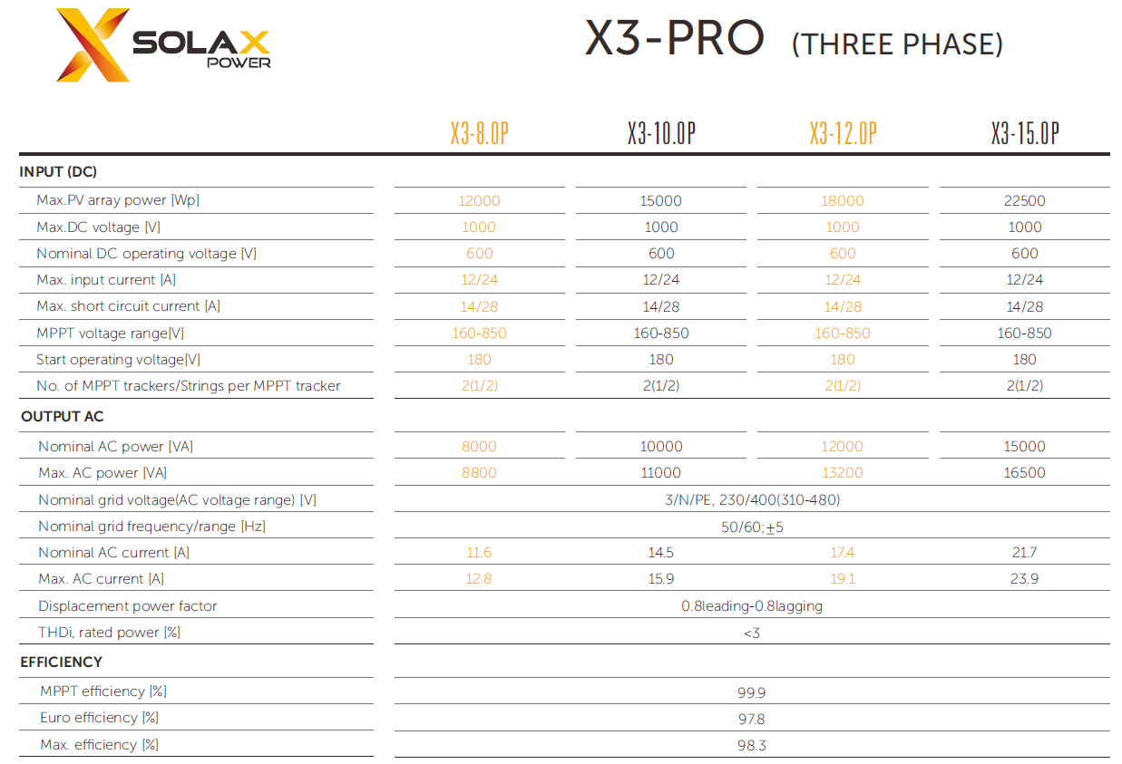 X3-PRO : 8.0KW | 10.0KW | 12.0KW | 15.0KW