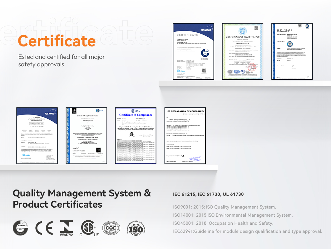 United Energy founded in 2009, National high-tech enterprise,focus on solar panel R&D obtained more than 100 patents.